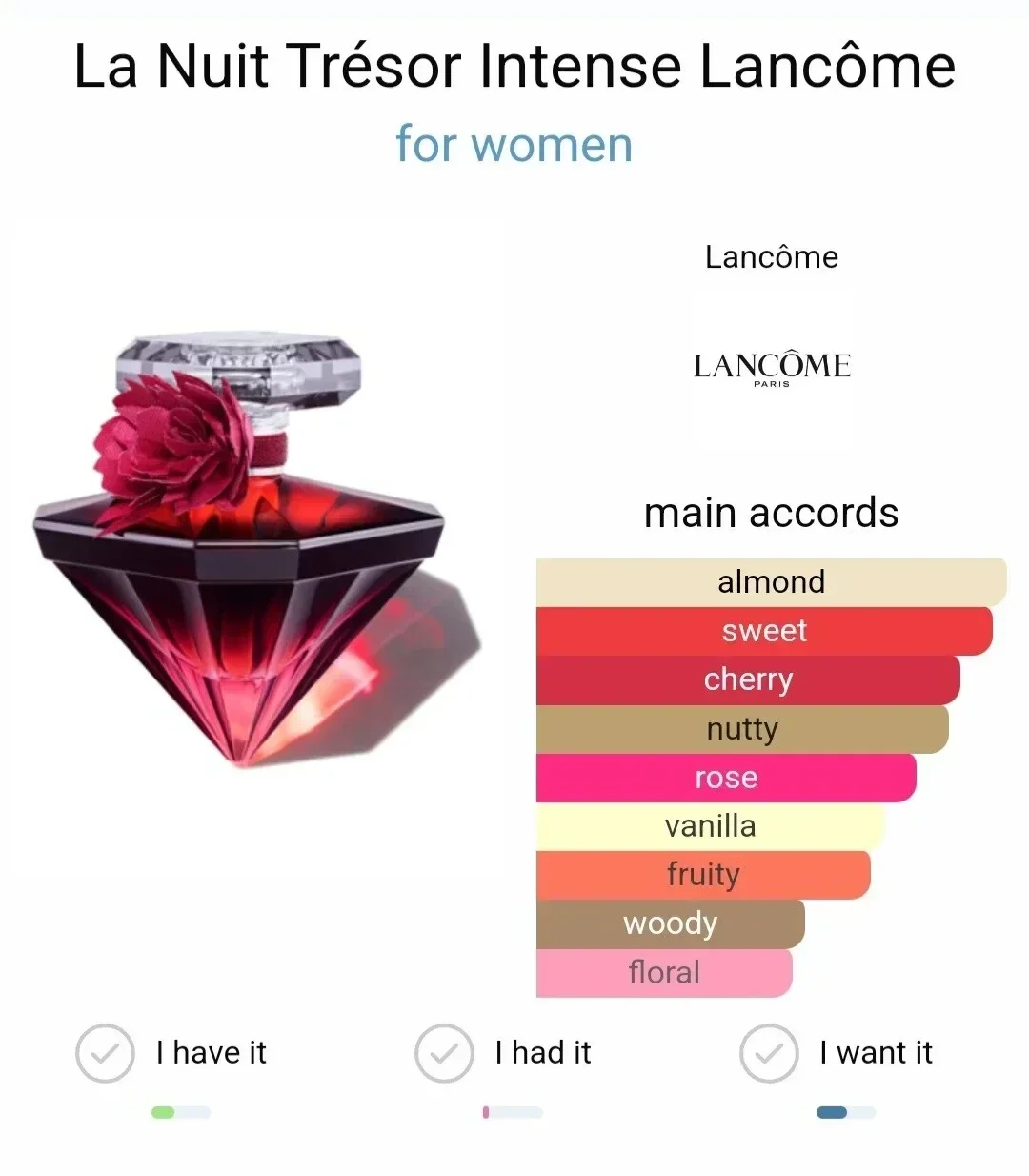 Die Damaszenerrose symbolisiert Liebe und Leidenschaft. Lancôme La Nuit Trésor Intense wurde von den Parfümeurinnen Amandine Clerc-Marie und Honorine Blanc kreiert. Um das betörende Blumenaroma zu intensivieren, erforschten sie mithilfe der Smell-the-Taste®-Technologie die Schwarzkirsche. Die Saftigkeit der Kirsche verbindet sich harmonisch mit der leuchtend roten Rose.