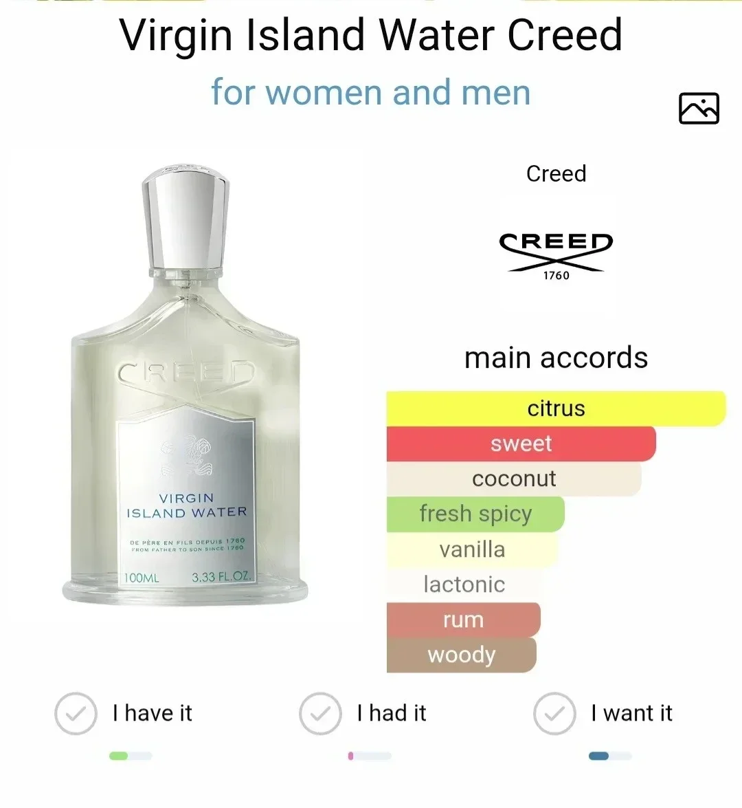 Begeben Sie sich auf eine Expeditionsreise in die tropischen Gewässer der Karibik! Das frische Eau de Parfum Unisex Creed Virgin Island Water hat den exotischen Duft der Karibik eingefangen. Der luxuriöse Duft evoziert hohe Palmen, weißen Strand, Kokosnüsse und fruchtige Cocktails. Entspannen Sie den Geist und Seele und gönnen Sie sich ein sonnenverwöhntes und paradiesisch duftendes Abenteuer!