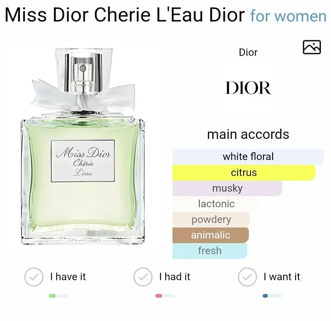 Miss Dior Chérie L'Eau ist kein komplizierter Duft, so François Demachy, dessen Idee es war, die Schönheit der Einfachheit zu betonen. Er besticht durch seine schlichte Formel aus Reinheit, Frische und zarten Akkorden. Das Parfum wurde für die moderne, fröhliche und lebenslustige Frau von heute entworfen, die graue Tage und Monotonie ablehnt und stattdessen Pastellfarben bevorzugt.