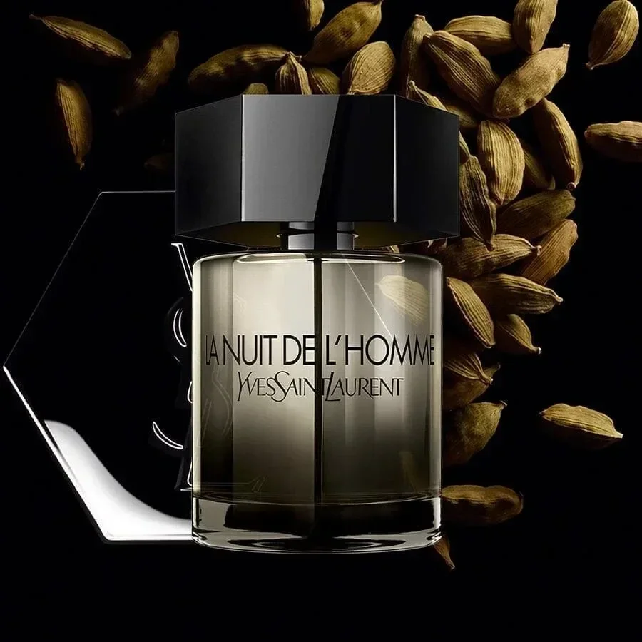Der geheimnisvolle dunkle Flakon birgt eine ebenso mysteriöse und betörende Duftkomposition in sich, die voller überraschend explosiver Akkorde steckt. Zu Beginn kommt würziger Kardamom zum Vorschein, dem kurz danach aromatischer Lavendel, energische Wacholderbeeren aus Virginia und frische Bergamotte folgen. Die im YSL La Nuit de L’Homme präsenten Duftnoten von Kümmel und Vetiver sorgen für einen maskulinen, kräftigen und opulenten Schluss.