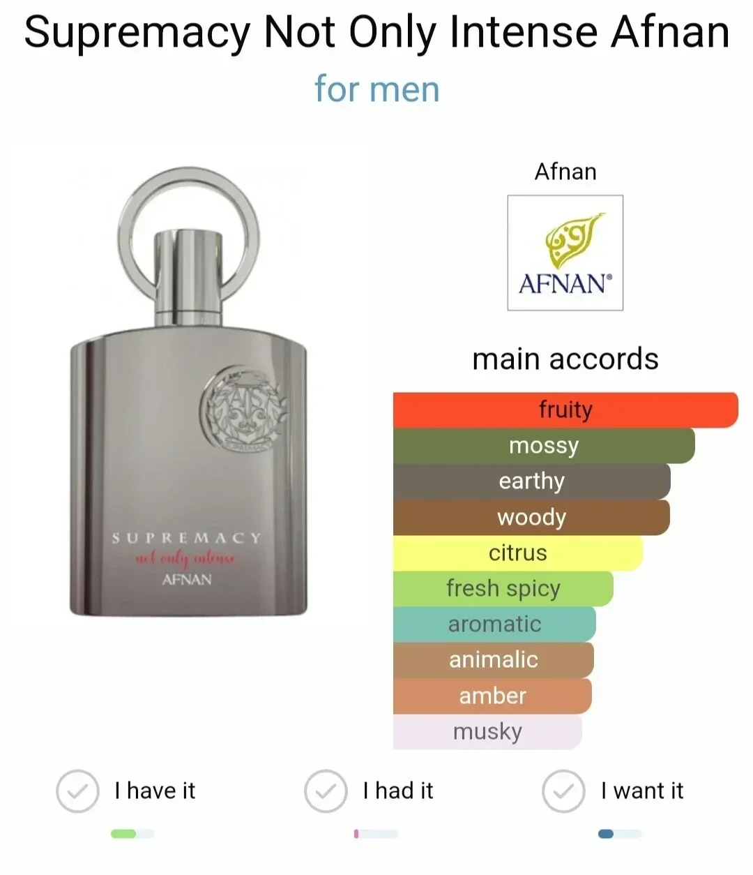 Ein Aroma, der nicht nur durch seine Intensität besticht, sondern auch gefährlich süchtig machend. Das ist der Duft, der Sie mit dem Parfümextrakt Afnan Supremacy Not Only Intense für Männer umgibt. Lassen Sie sich in eine andere Welt entführen!