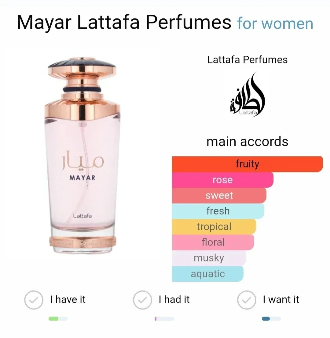 Lattafa ist eine Familienmarke, die seit drei Generationen bei der Herstellung ihrer Parfums moderne Innovationen mit Tradition verknüpft. Mit über 2.000 Produkten erreicht die Marke Kundinnen und Kunden in mehr als 120 Ländern auf der ganzen Welt. Jedes Parfum, darunter auch Lattafa Mayar, wird sehr sorgfältig entworfen. Viel Wert wird dabei auf hohe Qualität und persönlichen Ansatz gelegt. Die Marke achtet zudem auf Nachhaltigkeit und Umweltschutz, weil sie glaubt, dass Duftkreationen einen verantwortungsbewussten Umgang mit unserem Planeten erfordern.