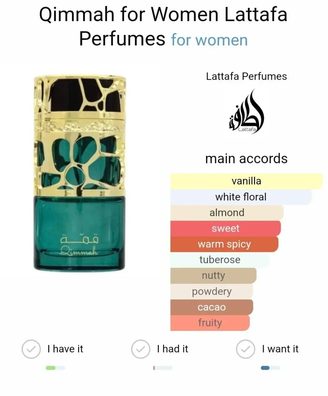 Was macht einen wahren Gentleman aus? Das Eau de Parfum Lattafa Qimmah vereint maskuline Stärke mit einer sanften Note, die Ihre natürliche charismatische Ausstrahlung perfekt unterstreicht. Dieser Duft wird alle ansprechen, die die perfekte Harmonie zwischen klassischen holzigen Akkorden und erfrischenden Kräuternoten suchen. Sie und Ihre Umgebung werden diesen Duft lieben.